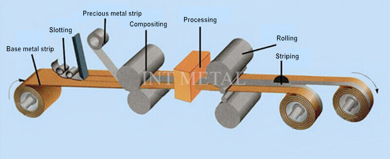 बेस मेटल स्ट्रिप स्लॉटिंग- कीमती धातु के साथ हॉट कंपोजिटिंग- प्रिसिजन रोलिंग- स्ट्रिपिंग