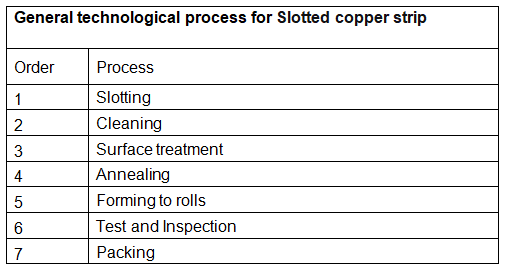 स्लॉटेड तांबे की पट्टी के लिए सामान्य तकनीकी प्रक्रिया